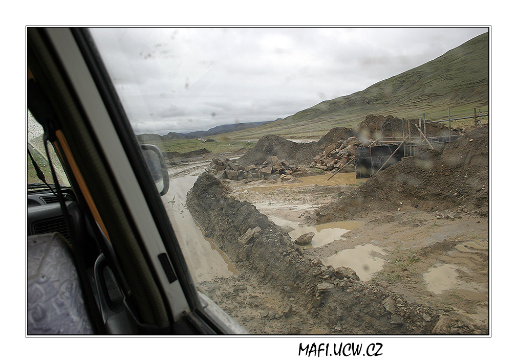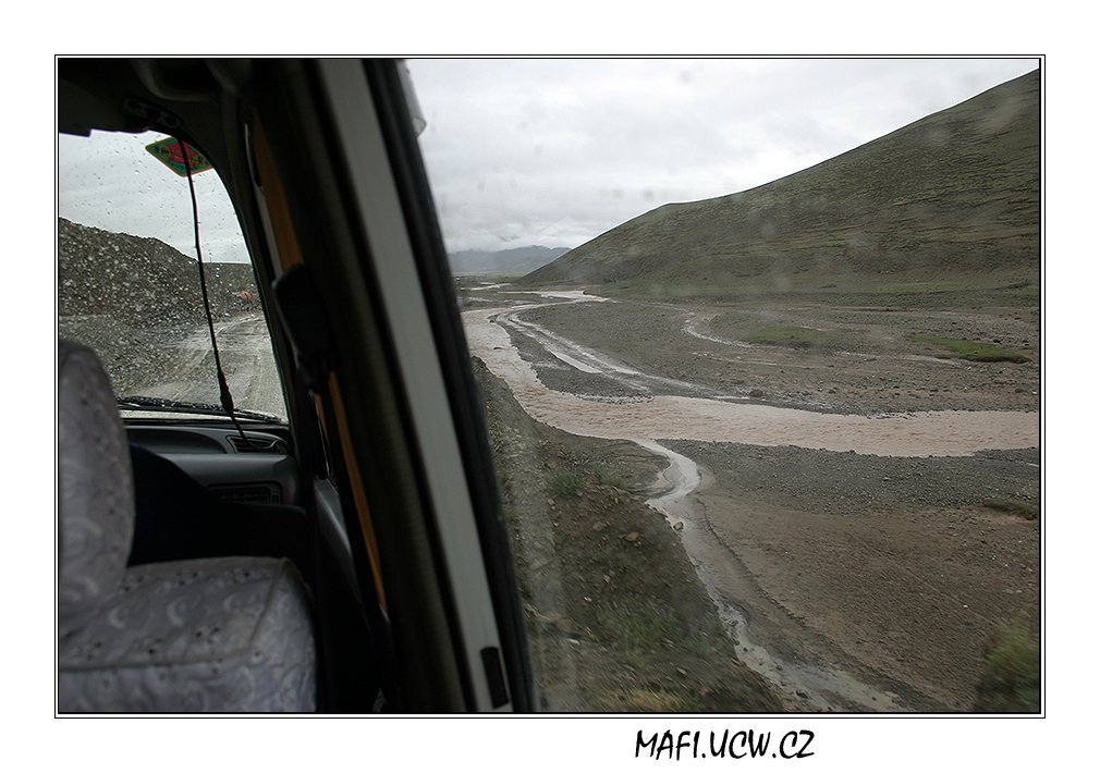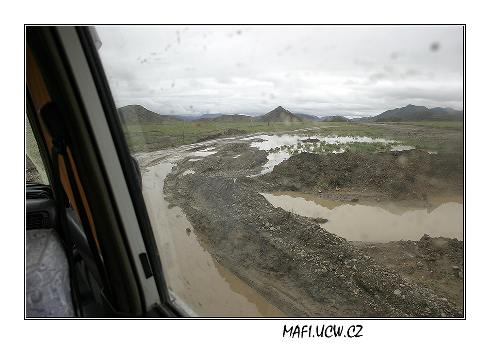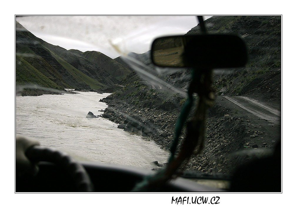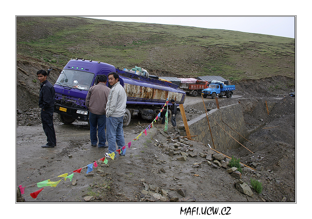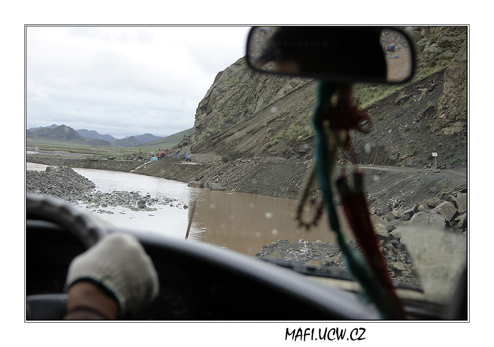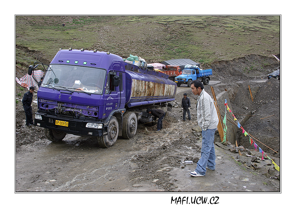 100km úsek mezinárodní silnice "friendship highway" spojující Čínu s Nepálem v Tibetu po dešti z července 2006. Bohužel v nejzajímavějších situacích jsem měl jiné starosti než focení, přecejen mám pud sebezáchovy, tak jsem měl občas foťák raději sbalený a připraven vystoupit. Při překonávání useků s více jak metrovou vodou hrozila stoupající voda v autě. Když jsme předjížděli vysoko naložené náklaďáky, kterým obsah korby začal padat na nás bylo bezpečnější projít kolem pěšky z větší vzdálenosti. Když hrozilo zapadnutí bylo lepší okamžitě pomáhat a když auto klouzá nekontrolovaně ze svahu je lepší se držet.