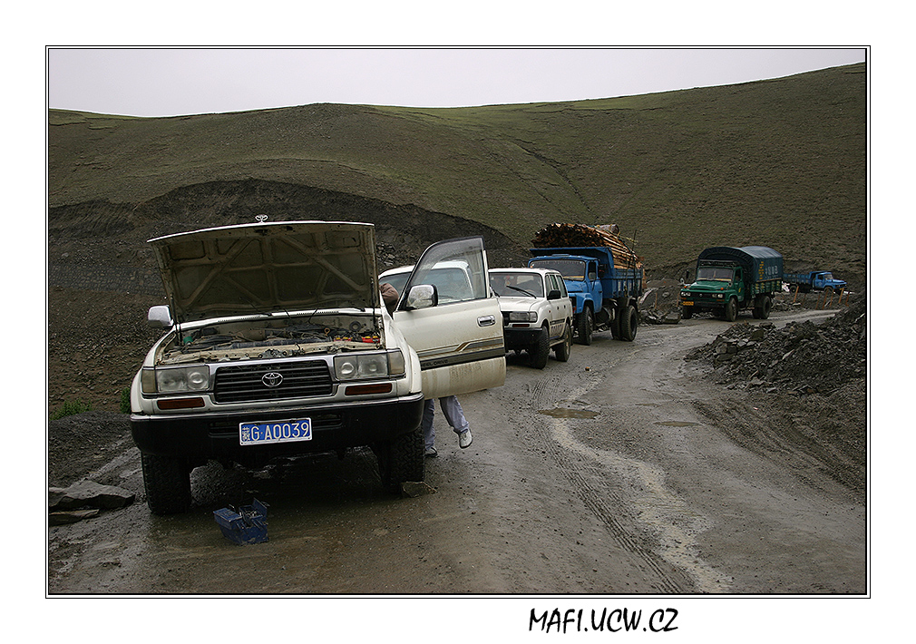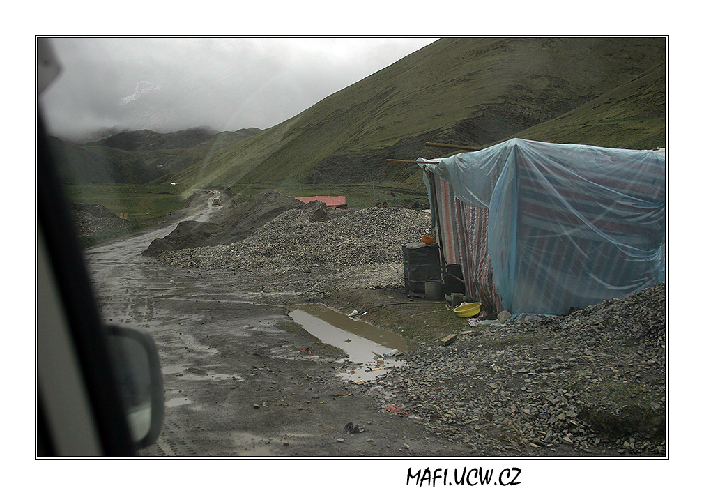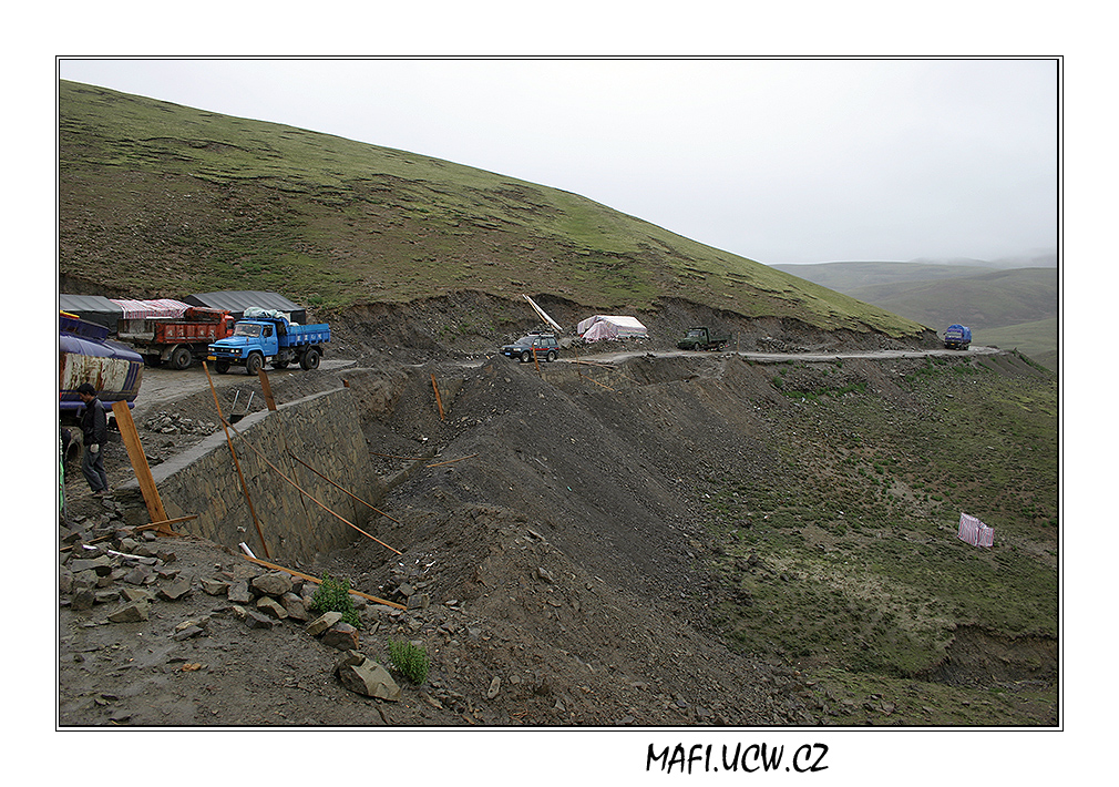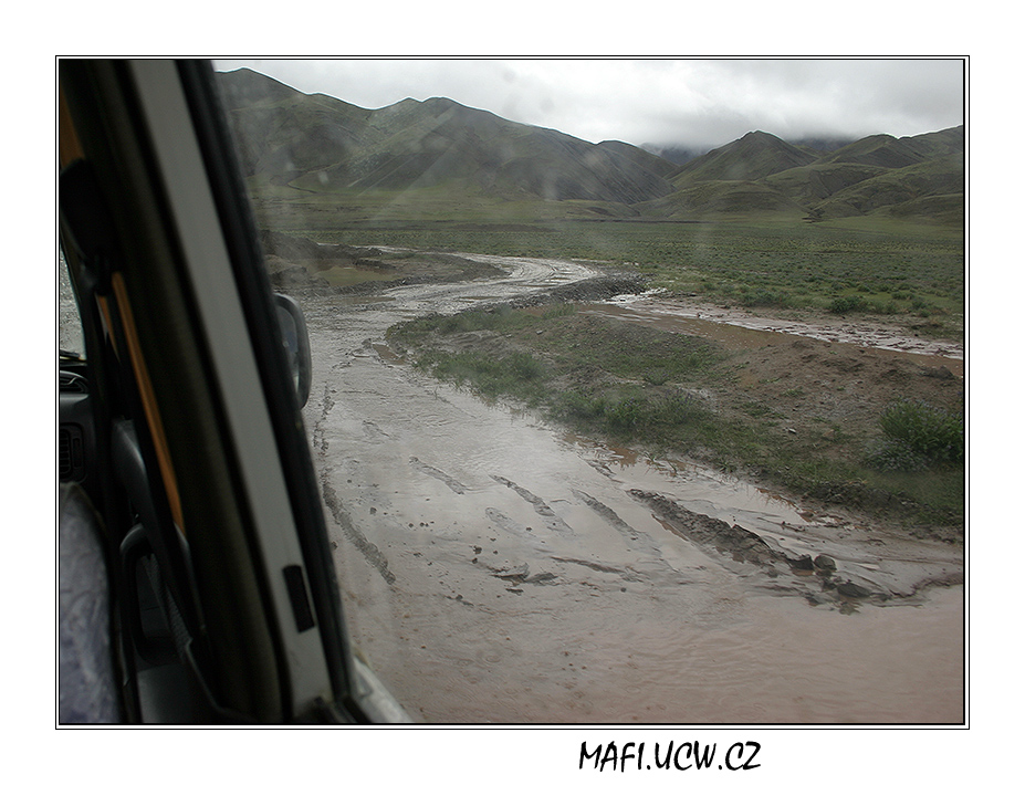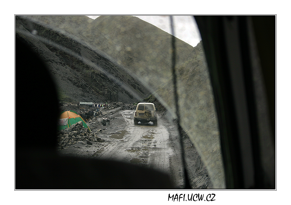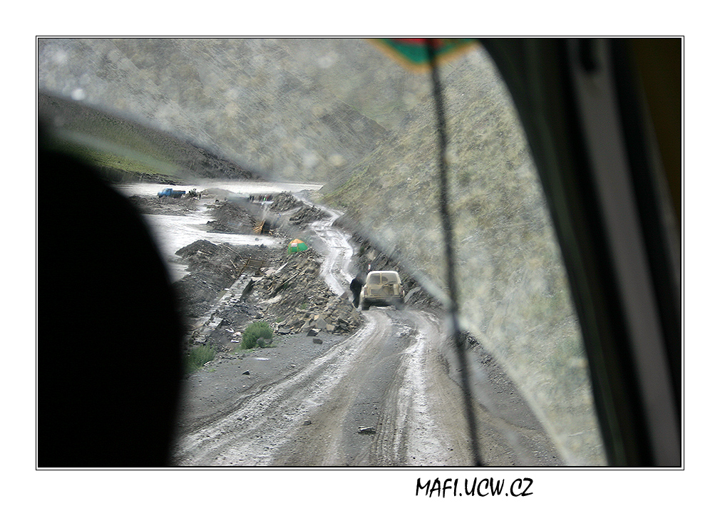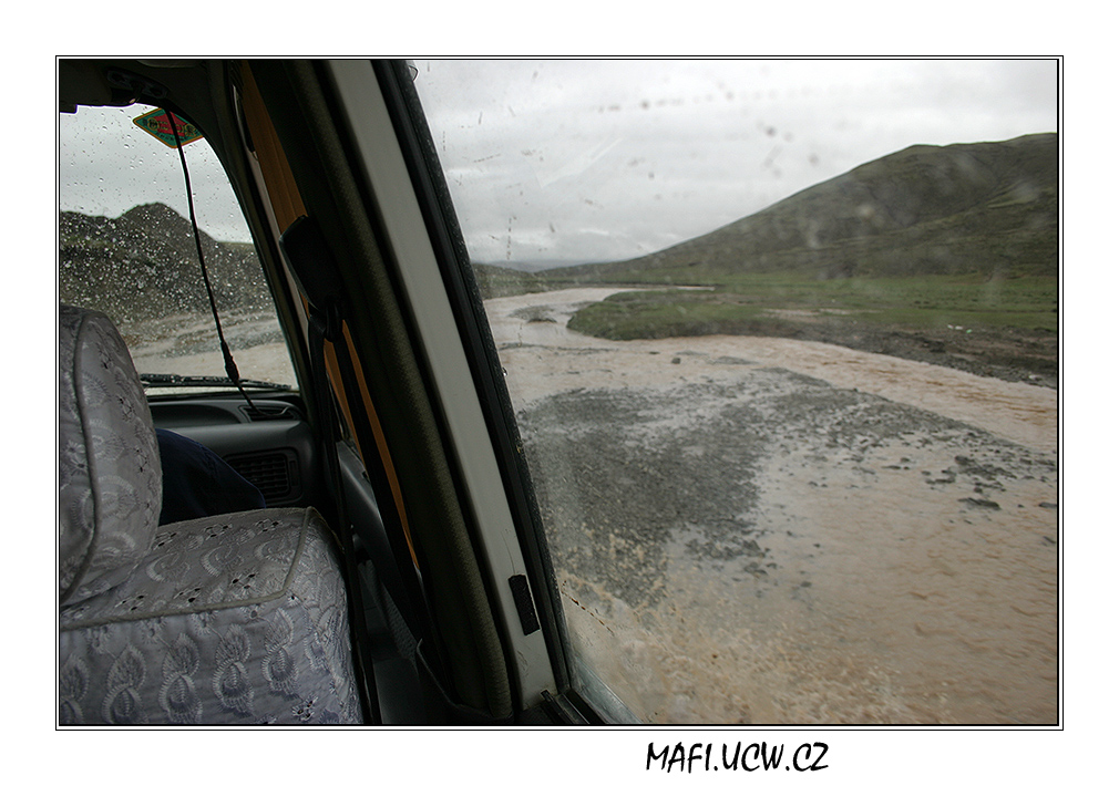100km úsek mezinárodní silnice "friendship highway" spojující Čínu s Nepálem v Tibetu po dešti z července 2006. Bohužel v nejzajímavějších situacích jsem měl jiné starosti než focení, přecejen mám pud sebezáchovy, tak jsem měl občas foťák raději sbalený a připraven vystoupit. Při překonávání useků s více jak metrovou vodou hrozila stoupající voda v autě. Když jsme předjížděli vysoko naložené náklaďáky, kterým obsah korby začal padat na nás bylo bezpečnější projít kolem pěšky z větší vzdálenosti. Když hrozilo zapadnutí bylo lepší okamžitě pomáhat a když auto klouzá nekontrolovaně ze svahu je lepší se držet.